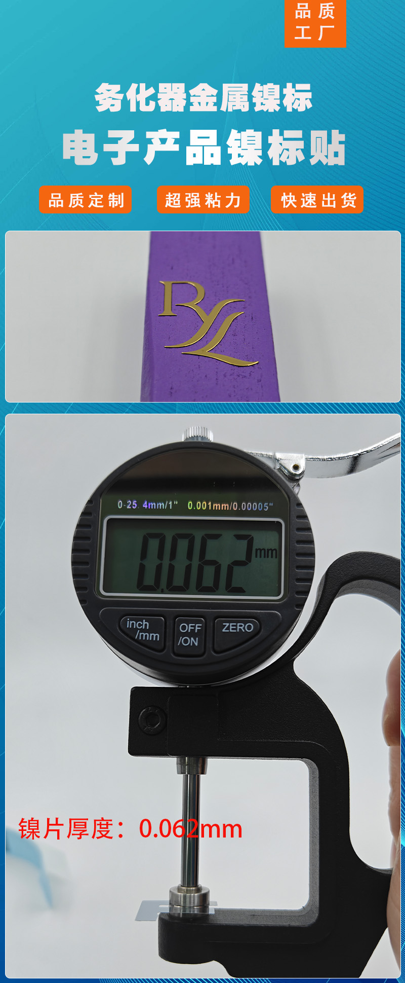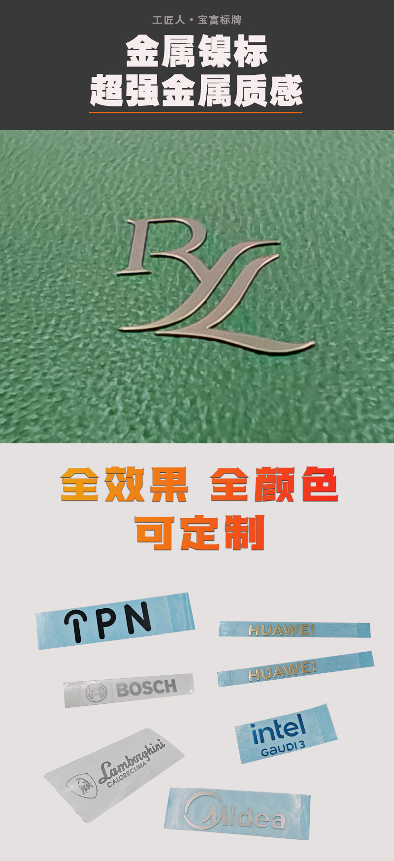 電鑄金屬鎳標牌適用于3C數碼產品、電子產品、家電家具、皮革包包、包裝行業、汽車行業、酒包裝、香水行業、包裝禮盒等,應用領域非常廣泛,歡迎有需要的老板咨詢我們。